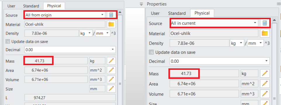 In ZW3D 2025 and earlier versions, in Physical properties there was Source option (All in current, All from origin, Only part in current…).